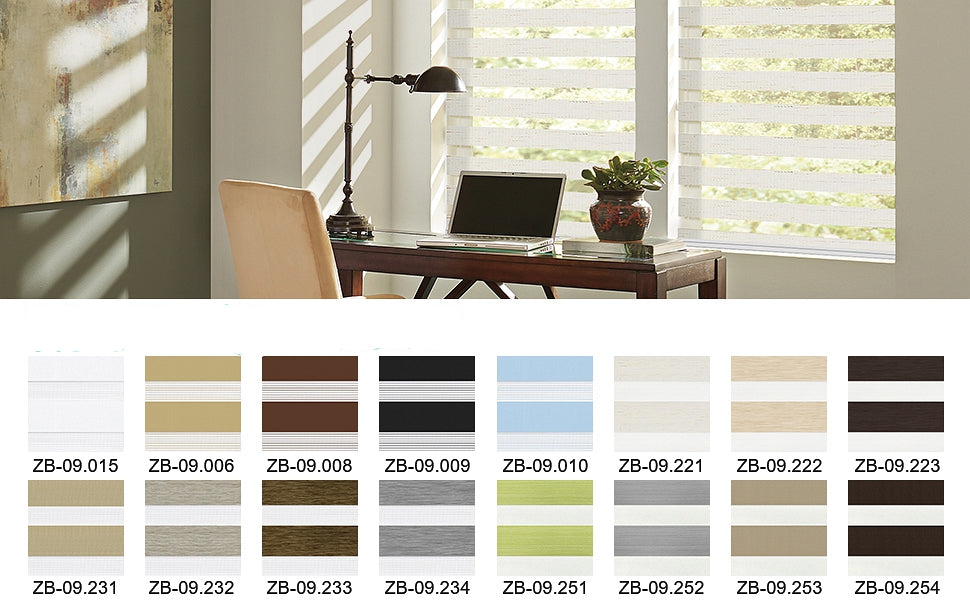 Dual Layered Horizontal Shades are made from sophisticated woven of various polyester fabric (one piece of fabric), which combined sheer mesh and opaque dual layers, easy to control light, view, privacy, ventilation, and style in the one blinds.