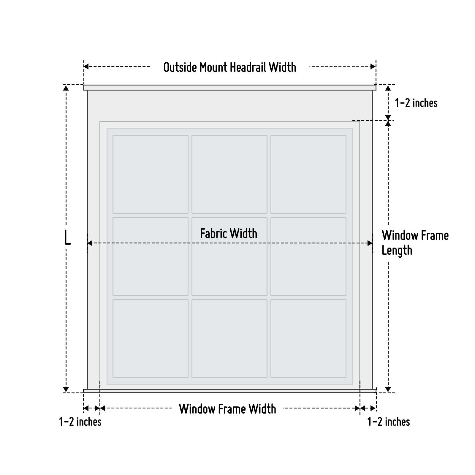 Measure the height of the window(Frame outer edge to edge). If space permits, it is recommended to mount the shade at least 10-12 inches above the window frame to account for its stack height when fully rolled up and to maximize the window's exposure.